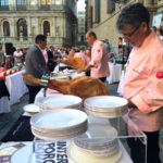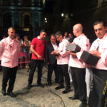 La cita fue en un lugar precioso como es la plaza del ayuntamiento de Toledo con la catedral como telón de fondo. Algunos turistas que transitaban por esas calles decidieron unirse a este espectáculo donde una vez, más disfrutamos del jamón.