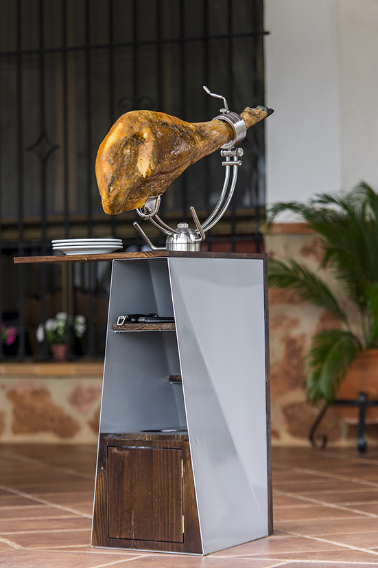 Javier buscaba que la mesa tuviera la estabilidad y rigidez necesaria, para poder llevar a cabo el corte de una pieza de jamón con seguridad. Buscaba una idea sencilla y a la vez atractiva.