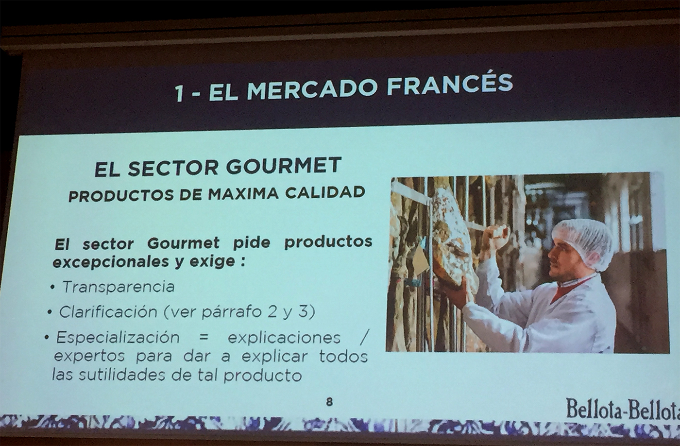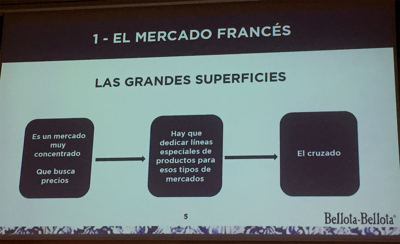Comenzó hablando de las dos líneas de comercialización que hay en cualquier mercado exterior. Por un lado están las grandes superficies y por otro, el sector gourmet o tiendas especializadas.