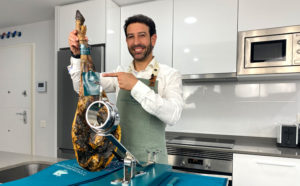 Lo vamos a hacer con un Jamón de Bellota 100% Ibérico Sánchez Romero Carvajal  y de la mano de Fran Robles Cobo, el primer campeón de España de corte de jamón.